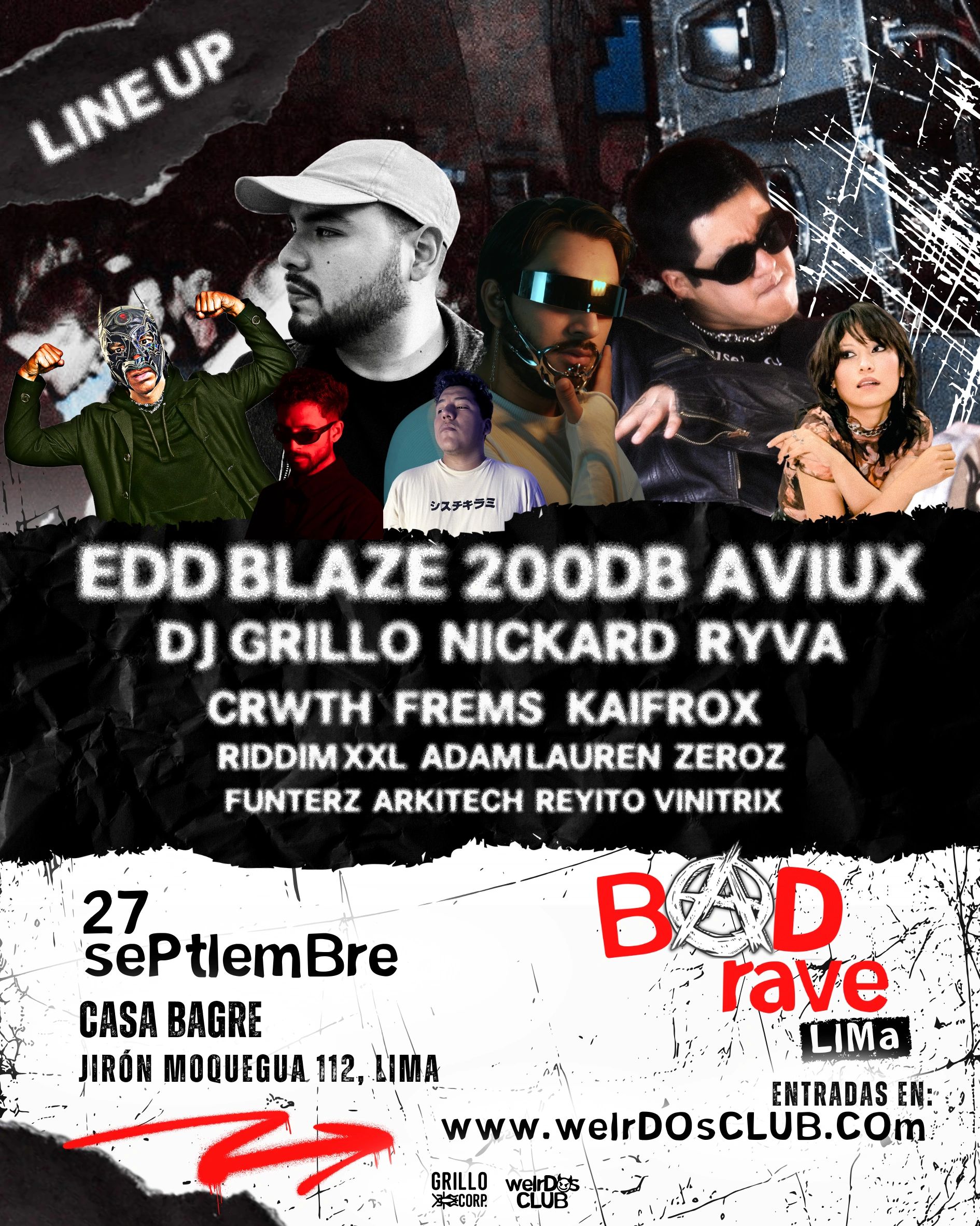 Este 27 de septiembre, Lima será testigo de un evento que desatará pura locura: BAD RAVE. Prepárate para vivir una noche única donde disfrutarás de tu subgénero favorito en una experiencia que quedará marcada en la historia de la escena electrónica.